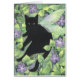 In de schaduwen van een heerlijke paarse periwinkle-wijnstok is een zwarte kool-zwarte fee-kat, die in een middagdutje zit. Kunst van Carmen Medlin.