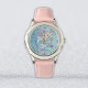 Blond zeemeermin polshorloge voor een meisje met blauwe, roze en gouden kleuren. Gepersonaliseerd met de naam van het kind of aangepaste tekst. Het beschikt over een schattige dolfijn, schildpad, ster, kasteel en zee wezens met faux glitter schubben op de achtergrond.