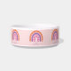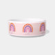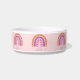 Leuke boho regenboog huisdier kom voor vrouw huisdieren. Kleurrijke pastel sinaasappel, paarse en roze regenboog met aanpasbare naamtekst in paarse. Sterren en harten patroon in de regenboog.