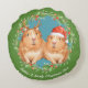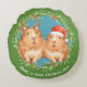 Schattig Guinee Paar Kerst rond kussen van Ricaso - met twee schattige kleine bruine cavia's - een in rendieren gewei de andere in een kerstmuts en beide in een winterbes krans - op een groene achtergrond - perfect cadeau idee voor nieuw onkruid of een paar