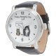 Grappig schattig kitten en chagrijnig kat vaderdag horloge met een grappig kattenontwerp met de tekst "He Made Me Do It" geplaatst op de klok-gezicht. De achtergrondkleur is ingesteld op wit, maar kan worden gewijzigd in elke gewenste kleur. Geweldig cadeau idee voor vaderdag. Zie in de winkel voor bijpassende kat ontworpen vaderdag producten.