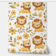 Dit behang is ideaal voor een baby-kinderkamer of kleuterslaapkamer en heeft een afbeelding met twee leeuwen, een koning en zijn koningin, in een herhalend patroon, samen met bladeren en bloemen in boho-stijl. De overheersende kleuren zijn goudbruin en salie groen, geplaatst op een crème achtergrond. Schattig!