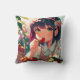 Schattige anime meisje eten aardbeien kussen
