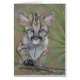 Deze schattige baby cougar wilde kat ziet er een beetje nerveus uit als hij naar de grote wereld kijkt. Zijn zoete kittenexpressie was onweerstaanbaar voor mij, ik moest hem schilderen, ik gebruikte zacht pastel omdat ik hou van de manier waarop ik elk klein cougar haar van zijn geweldige jas kan vangen. Deze originele kunstkaart met zijn wilde kattenschilderij zal een mooie kaart maken voor het sturen naar iedereen die een zachte plek heeft voor schattige babydieren. Ik heb deze kaart leeg gelaten voor je eigen bericht. Dit kleine baby werd geschilderd op een foto van een soort toestemming van Big cat-redding en hij maakt deel uit van mijn collectie van wilde dieren.