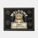 Voeg een vleugje warmte en humor toe aan uw deur met deze aanpasbare welkomstmat met een schattige beren welp met een houten plank met uw persoonlijke familienaam. Het ontwerp bevat charmante quotes zoals "Knuffels, gelach en een beetje beer magie!" en "In deze hol is iedereen familie", waardoor het de perfecte keuze is voor het creëren van een gastvrije sfeer. Een dubbele lijsten rand in bruine tinten en crème voegt elegantie toe, terwijl de rustieke houttextuur en speelse typografie de look compleet maken. Ideaal voor gezinnen, dierenvrienden of iedereen die van zijn entree een gezellige oase van liefde en gelach wil maken.