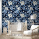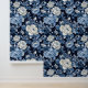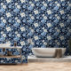 Schattige betegeld blauw wit rozen patroon Wallpaper