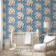 Schattige Blauw Wit Bloemenpatroon Kinder Kwekerij Behang