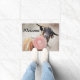 Op een achtergrond van de waterverf, zegt dit fresco-stijl schilderij van een schattige billy die een bubblegumballetje blaast "Welkom" (Je kunt deze tekst wijzigen) Geitelbekleding Welkomstvlees -
