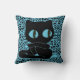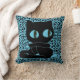 Hier is een heerlijk schattige zwarte cartoon kat op een achtergrond van hemelsblauw met een dierlijke afdruk in het zwart. Grappig kat heeft enorme blauwe ogen. Beschikbaar op een reeks van kussenstijlen en grootte. Van Pillow , een Scarebaby Design shop. Gesteund door de Zazzle-garantie.