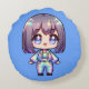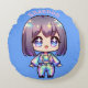 Schattige Chibi holografisch monogram op blauw | Rond Kussen