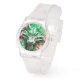 Green Dragon (papier uitsnijding en origami stijl) met roze pioenrozen. Ontwerp op Silicone Strap helder horloge met half transparante Romeinse cijfers. Perfect voor Chinees en Vietnamees Nieuwjaar van de Dragon 2024 of verjaardag (mensen geboren in Dragon Year). — "De draak (vereenvoudigd Chinees: 龙; traditioneel Chinees: 龍) is een van de 12-jarige cyclus van dieren die voorkomen in de Chinese dierenriem gerelateerd aan de Chinese kalender. Het jaar van de draak wordt geassocieerd met het symbool van de aardse tak 辰, uitgesproken als chen. Een academisch onderzoeker heeft voorgesteld dat het karakter van de aardse tak geassocieerd kan zijn met schorpioenen; het kan de ster Antares hebben gesymboliseerd." Men kan zeggen dat mensen geboren zijn in het "Jaar van de Draak", terwijl ze ook het volgende elementaire teken dragen: 22 januari 1928 - 9 februari 1929 = Earth Dragon, 8 februari 1940 - 26 januari 1941 = Metal Dragon, 27 januari 1952 - 13 februari 1953 = Water Dragon, 13 februari 1964 - 1 februari 1965 = Wood Dragon, 31 januari 1976 - 17 februari 1977 = Fire Dragon, 17 februari 1988 - 5 februari 1989 = Earth Dragon, 5 februari 2000 - 23 januari 2001 = Metal Dragon, 23 januari 2012 - 9 februari 2013 = Water Dragon, 10 februari 2024 - 28 januari 2025 = Wood Dragon Fire, 28 januari 2036 - 14 februari 2037 = Fire Dragon " Wikipedia