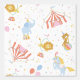 Schattige vrolijk circuspatroon met tenten, paarden, leeuwen, tijgers, olifanten, ballonnen en confetti op witte achtergrond