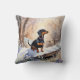 Schattige Dachshund Winter Sneeuw Waterverf Honden Kussen
