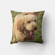 Deze schattige kussen bevatten een foto van een schattige Golden Doodle dog. Fotografie gemaakt door bekroonde fotograaf Maria Jeffs.