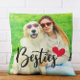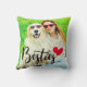 Voeg een gepersonaliseerd sms-bericht toe aan creëer je eigen hondenmoeder en haar schattige thema foto gooi kussen. Voeg je eigen schattige familie hond foto. U kunt de zwarte en rode kleuren van de vector art besties hart typografie afbeelding aanpassen. Voeg meer tekst toe aan het gepersonaliseerde ontwerp als u dat wilt.