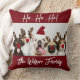 Een schattig Hondenliefhebbers Sierkussen voor uw vakantiehuis Decorations. Ontworpen met vijf schattige honden allemaal gekleed met grappige Santa Noses, Rendier Antlers, en een met een Santa Hat - allemaal op een lichtgekleurde achtergrond met rode rand. De tekst bevat: Ho, Ho, Ho! en uw familienaam. Om met jouw naam te personaliseren, plaats eenvoudig jouw tekst in onze gemakkelijke sjabloon, die het monster vervangt. Het omgekeerde is een bijpassende rode achtergrond.