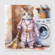 Breng vreugde aan uw dag met dit charmante ontwerp met een schattige kat in pyjama die de was aanpakt! Deze grappige en vertederende illustratie is perfect voor kattenliefhebbers en voegt een heerlijke touch toe aan elk product. Verken ons assortiment van items versierd met deze beminnelijke katachtige, en maak elke dag een beetje helderder!