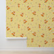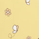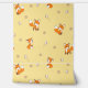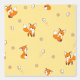 Steek kleine cartoon vossen met grote oren en staarten omringd door bloemen en flapende vlinders.