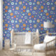 Grappige en leuke knoppen voor een kinderkamer of voor een kinder kamer. De witte geel-oranje en roze knoppen bevinden zich op een lichtblauwe achtergrond.