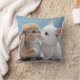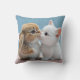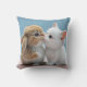 Dit is een kussenkussen. Een kat en een konijn kussen elkaar.
