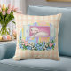 Een zacht, klein, lente lam steekt zijn hoofd uit het raam van een kleurrijke paasei woning versierd met een assortiment van lente bloemen.