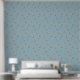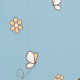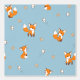 Steek kleine cartoon vossen met grote oren en staarten omringd door bloemen en flapende vlinders.
