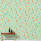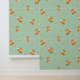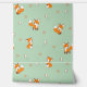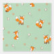 Steek kleine cartoon vossen met grote oren en staarten omringd door bloemen en flapende vlinders.