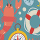Dit leuke nautische zeebehang heeft een leuk zeeen levenspatroon van zeeschepen, meeuwen, zeilboten, reddingswerkers, kreeften en meer in de kleuren rood, wit, blauw en geel. Schattige voor de kamer van elk kind!