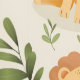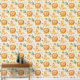Dit behang is ideaal voor een baby-kinderkamer of kleuterslaapkamer en heeft een afbeelding met twee leeuwen, een koning en zijn koningin, in een herhalend patroon, samen met bladeren in boho-stijl. De overheersende kleuren zijn goudbruin en salie groen, geplaatst op een crème achtergrond. Schattig!