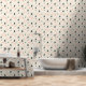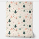 Een charmant vakantiepatroon met grillige kerstbomen in pastelgroen en roze, met verspreide stippen en sneeuwvlokken op een zacht crèmekleurige achtergrond. Perfect voor feestelijke decoratie of seizoensgebonden producten.