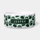 Onze Schattigee en moderne Paw Prints Pet Bowl ontwerp heeft een schattig patroon van schattige paw prints in tinten van donker blauwgroen groen, zwart en poederblauw. Deze pop art stijl huisdier kom kan worden gepersonaliseerd door het bijwerken van de tekst met de naam van uw harige vriend.