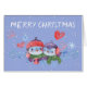 Aan de voorkant van deze Vakantiegrootkaart draaien twee schattige kleine pinguïns samen terwijl rode harten en sneeuwvlokken om hen heen herfsten. Beide pinguïns draag petten en sjaals, en één heeft een kop warme chocolade. Witte tekst bovenaan de kaart staat "Vrolijk kerstfeest". De afbeeldingen en de tekst worden geplaatst op een ijzige blauwe achtergrond.De binnenkant van de kaart herhaalt de blauwe achtergrond, terwijl de witte bodem een ander afbeelding van een pinguïn met een snoepstok en een hart heeft, en verscheidene tekstgebieden voor u om aan te passen.