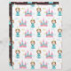 Schattig gepatterd papier met een prinses in een blauwe jurk, een kasteel en wolken in blauwe en gele kleuren. Aan de ene kant is de achtergrond wit en aan de andere kant bruin. U kunt de kleurenachtergrond veranderen als u verder aanpast. Illustratief en ontworpen door Patricia Alvarez.