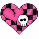 Schattige meisjesachtige hete roze en zwarte emo, scène en punk rots retro jaren 80 dambordpatroon met een schedel en gebroken hart als een 5 x 7" acryl fotosculptuur magneet.