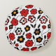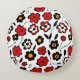 Schattige rood, zwart en wit bloempatroon rond kussen