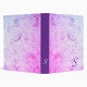 De ontwerpachtergrond kenmerkt een roze en blauwe marmeren werveling als achtergrond. Het door u geleverde initiaal wordt weergegeven in een groot, roze script. Een citaat van de heilige Moeder Theresa wordt weergegeven in het voorste ritsvak. Alle tekst kan worden aangepast.