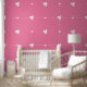 NewParkLane - Schattige warm / frambozenroze behang, met een patroon van witte handgetekende harten. Een schattig ontwerp voor een kinderkamer of kinder speelkamer.