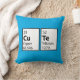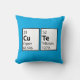Geweldige blauw kussen met het woord SCHATTIGE gemaakt met behulp van elementen uit het periodiek systeem. U kunt de achtergrondkleur wijzigen van blauw, naar wat het beste bij u past. Briljant cadeau idee voor schattige nerds, geeks, wetenschappers en professoren.