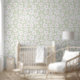 Hand getrokken madeliefpatroon op lichte salie groene achtergrond, voor kinderkamer, kinderdagverblijf