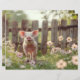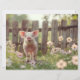 Een charmant kunstwerk met een schattig varken dat vrolijk een kleurrijke bloementuin verkent, vreugde, grilligheid en rustieke zoetheid uitstraalt.