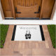 Welkom deurmat met een zwarte illustratie van een balletdansers slippers en haar benen. Ballerina staat op haar tenen, en pointe.