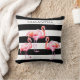 Schattigee zwart-witte strepen roze flamingo gepersonaliseerde naam gooi kussen.
