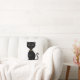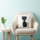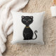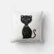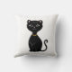 Schattige slimme zwarte kat cartoon op witte kussen.