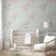 Dit behang heeft een schattig ballerina-thema met babydieren. Een afbeelding van een lieve kleine olifant en nijlpaard, beide gekleed in roze tutu's, zijn geaccentueerd met roze bloemetjes en betegeld over een stoffige salie groene achtergrond. Het is perfect voor een ballerina's studio, de kamer van een klein meisje of een baby-kinderdagverblijf.