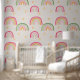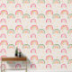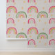 Dit aangepaste behang heeft een schattig boho regenboogpatroon op een zachte beige of crèmekleurige achtergrond. Kleurrijke kleine regenbogen zijn geaccentueerd met schattige sterren en betegeld over het behang. Het is perfect voor een baby kinderkamer of kleine meisjeskamer.