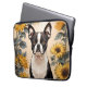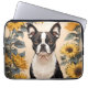 Schattigee Boston Terrier gele zonnebloemen Laptop Sleeve