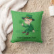 Kussen met een illustratie van een schattige lachende kabouter in een groen pak, een hoge hoed terwijl hij een klaverblad vasthoudt Een perfect ontwerp om de Saint Patrick's Day te vieren, getekend door Radka2D