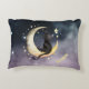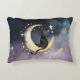 Een schattige zwarte cartoon zit vrolijk op een maansikkel in een sterrenhemel. Perfect voor kattenliefhebbers.