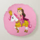 Sierkussen met een afbeelding van een vrolijke prinses met een roze jurk op een pony, mooi cadeau voor kleine meisjes en een geweldige decoratie voor een kinderkamer of meisjesslaapkamer