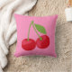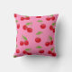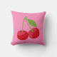 Schattigee rode kersen dubbelzijdig werpkussen. Aan de voorzijde is een groot paar kersen. Op de achterkant van het kussen is er een kleurrijk patroon van kersen. Perfect voor uw kamer met kersenthema.